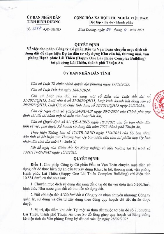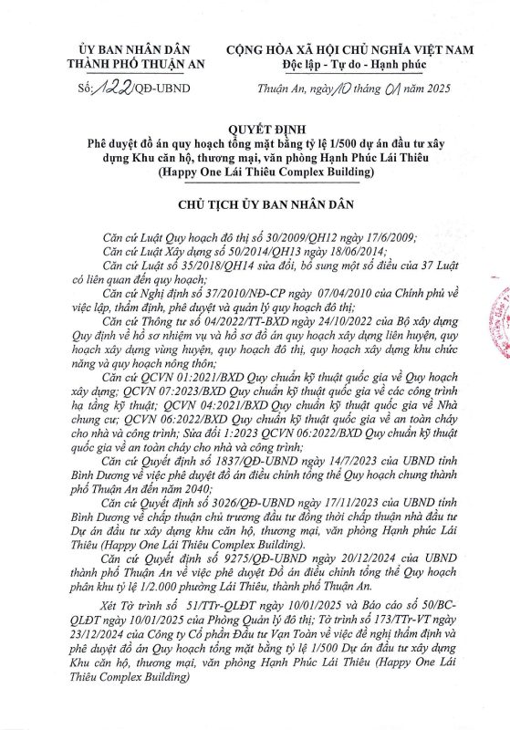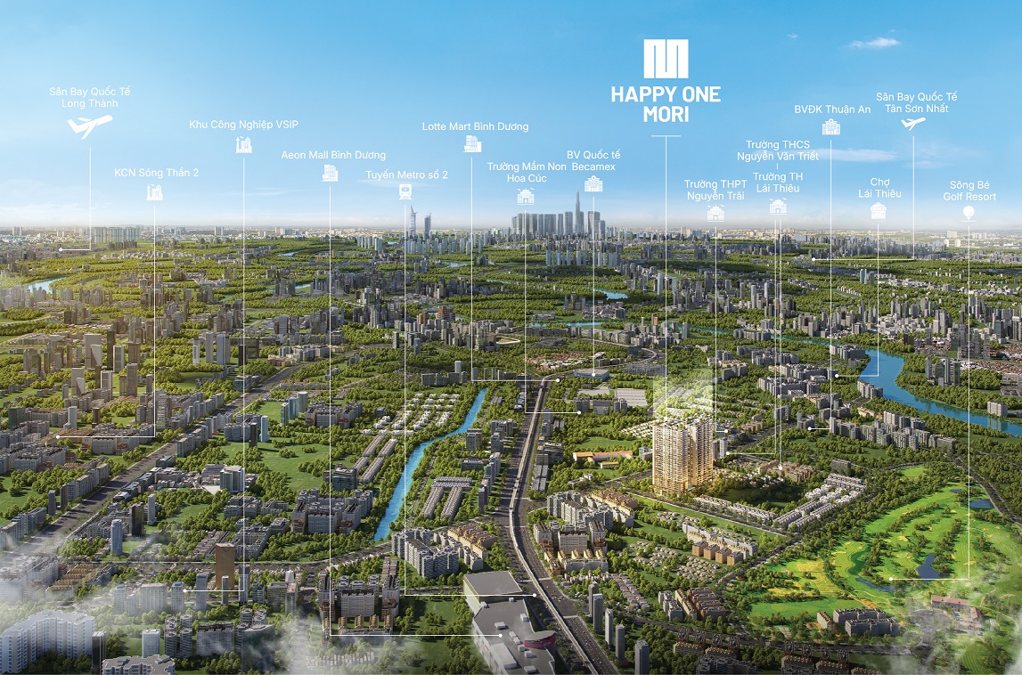 Happy One Mori là dự án căn hộ cao cấp do Vạn Xuân Group phát triển, tọa lạc tại trung tâm phường Lái Thiêu, thành phố Hồ Chí Minh, thuận tiện di chuyển đến các khu vực kinh tế trọng điểm của vùng Đông Nam Bộ.