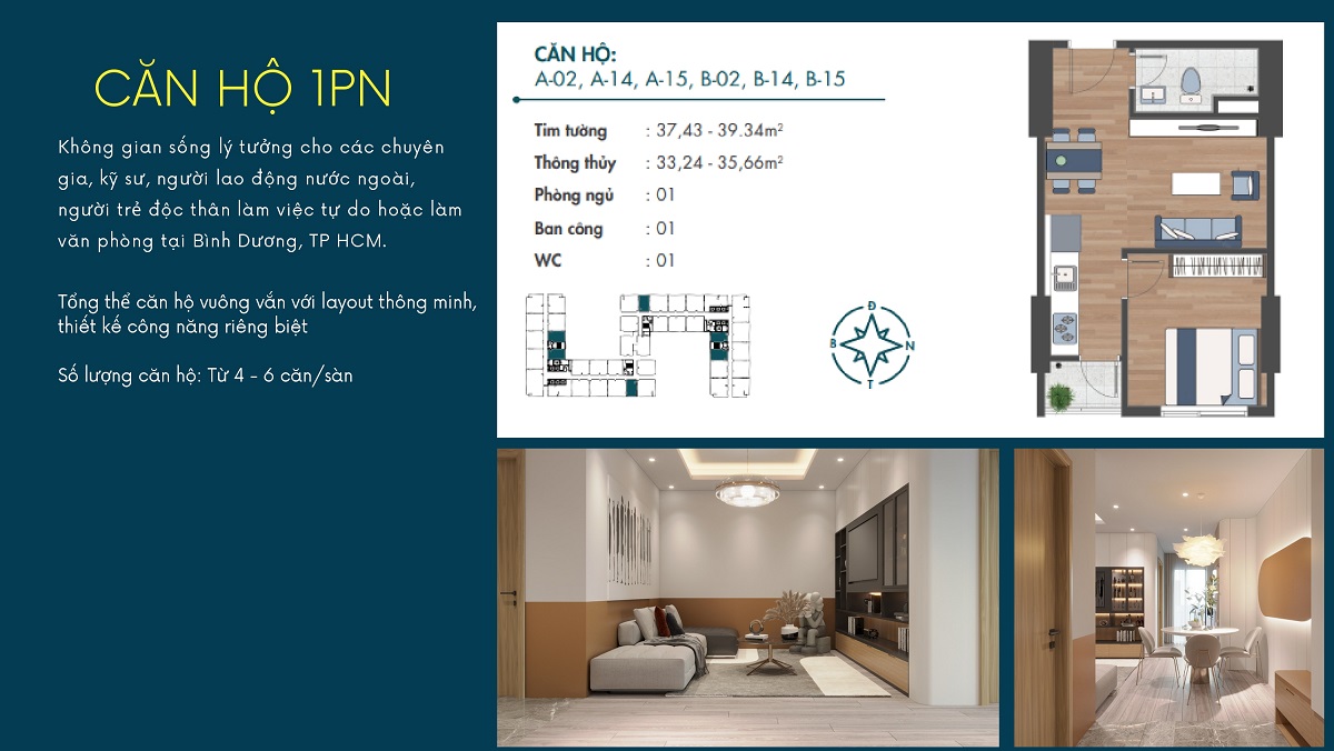 - Diện tích : 37,43m2 đến 95,80m2