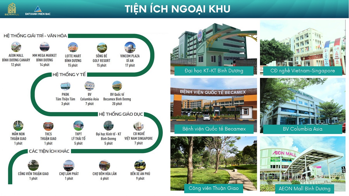Từ BenHill, cư dân chỉ mất khoảng 20 phút để di chuyển về trung tâm TP.HCM. Thuận Giao giữ vai trò “tâm điểm vàng” trong tứ giác phát triển Thủ Đức – Thủ Dầu Một – Dĩ An – Biên Hòa, mang lại lợi thế vượt trội cho cả an cư lẫn đầu tư.